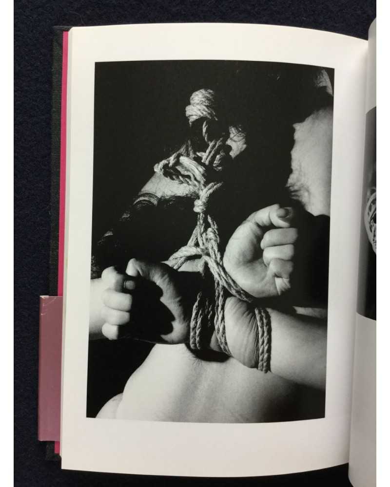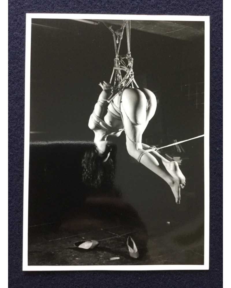 Published in 1992 by Mole, a signed copy with original print (13 x 18 cm) of a striking photobook exploring the art of Japanese rope bondage, or kinbaku. Through evocative black-and-white, Fuji captures the intricate interplay of restraint, trust, and aesthetic beauty, blending eroticism with cultural tradition. Reflecting the 1990s underground fascination with shibari, this rare volume offers a sensual yet respectful portrayal of the practice, making it a coveted collectible for enthusiasts of avant-garde and erotic photography.