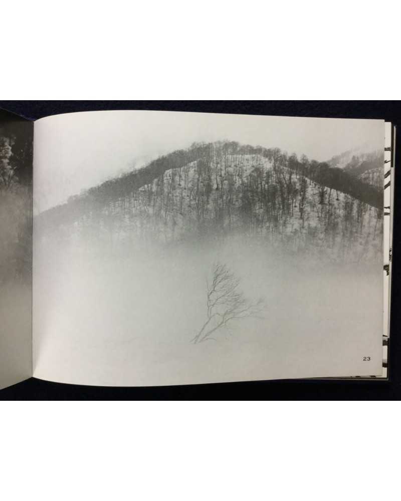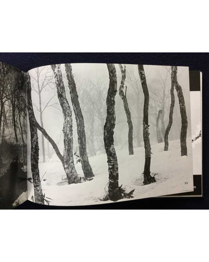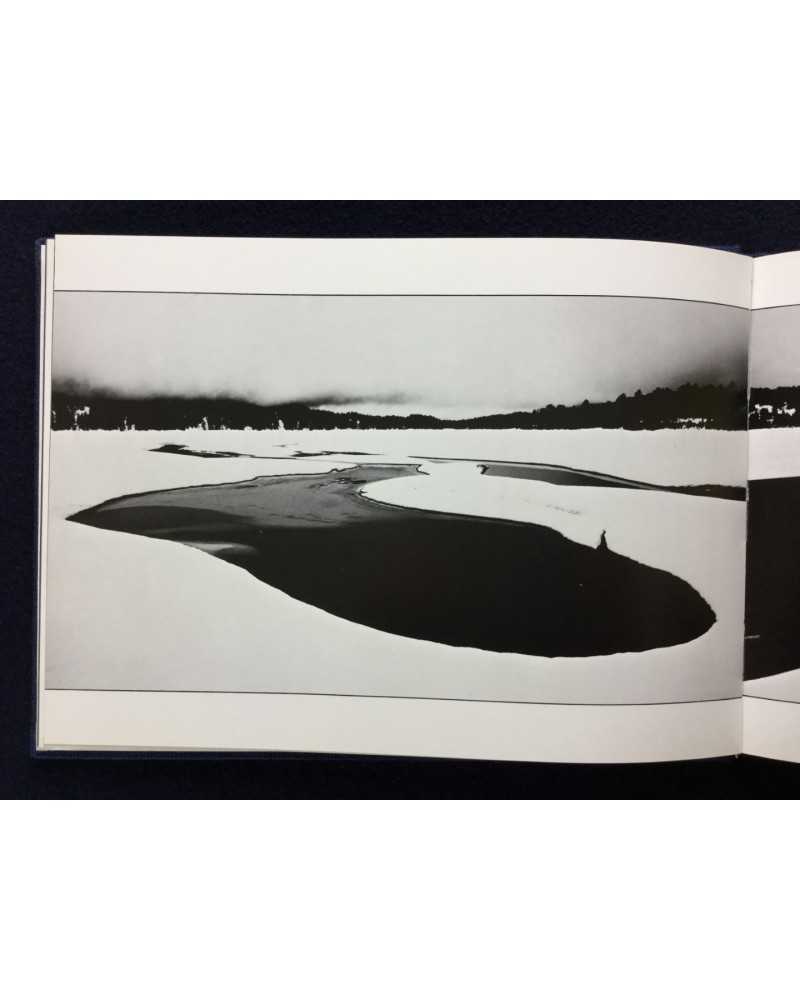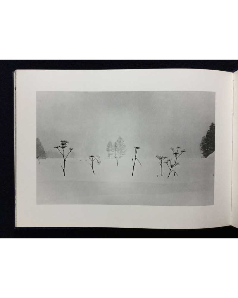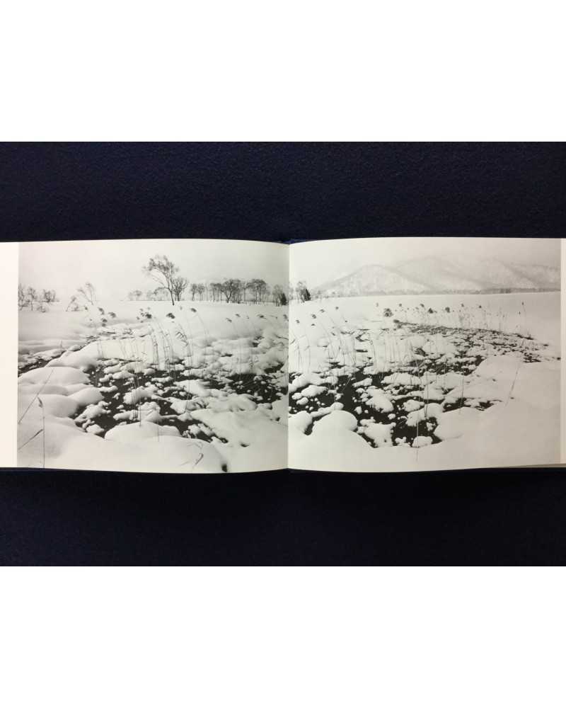 Signed copy of a photobook published in 1978 by Shigei Shuppan capturing the ethereal beauty of Japan’s Oze National Park. Featuring Kanaumi’s evocative black-and-white images of marshlands, forests, and landscapes during winter. The book blends serene naturalism with poetic sensitivity, offering a meditative tribute to Oze’s untouched wilderness, cherished by collectors for its craftsmanship and tranquil vision.