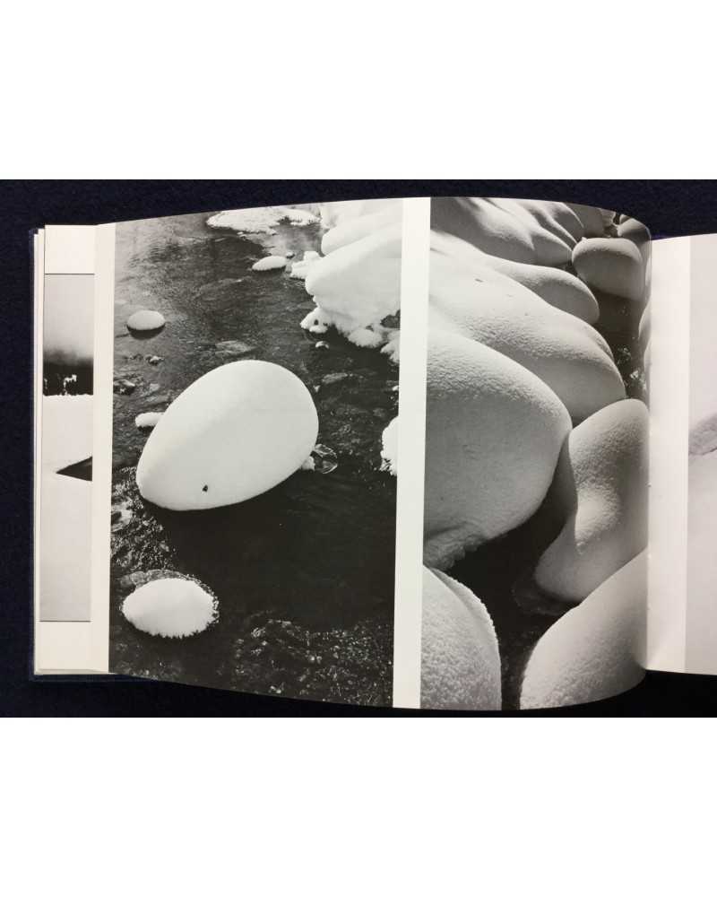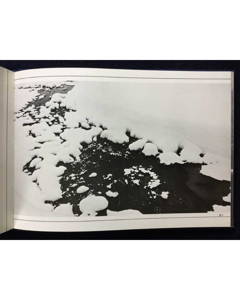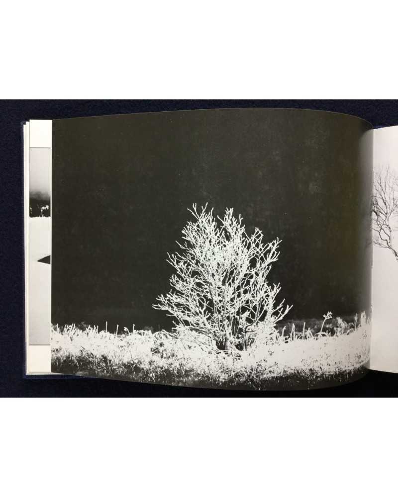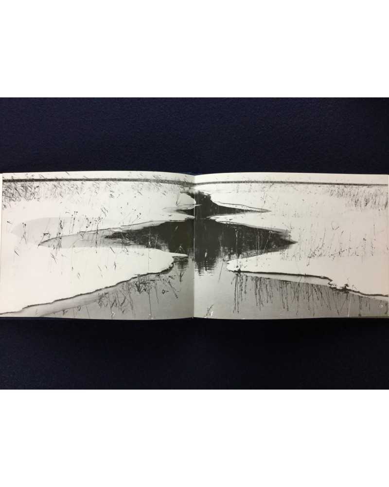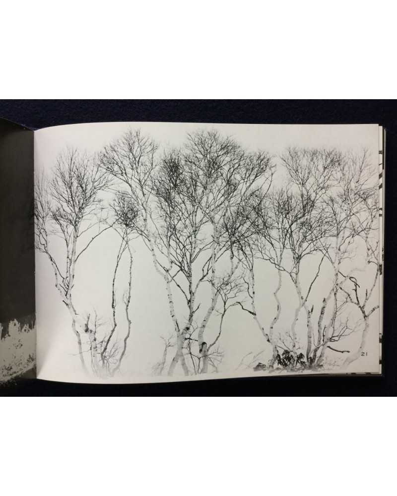 Signed copy of a photobook published in 1978 by Shigei Shuppan capturing the ethereal beauty of Japan’s Oze National Park. Featuring Kanaumi’s evocative black-and-white images of marshlands, forests, and landscapes during winter. The book blends serene naturalism with poetic sensitivity, offering a meditative tribute to Oze’s untouched wilderness, cherished by collectors for its craftsmanship and tranquil vision.